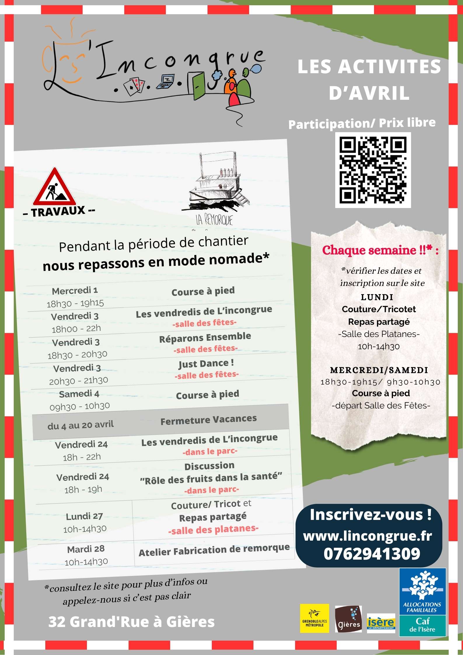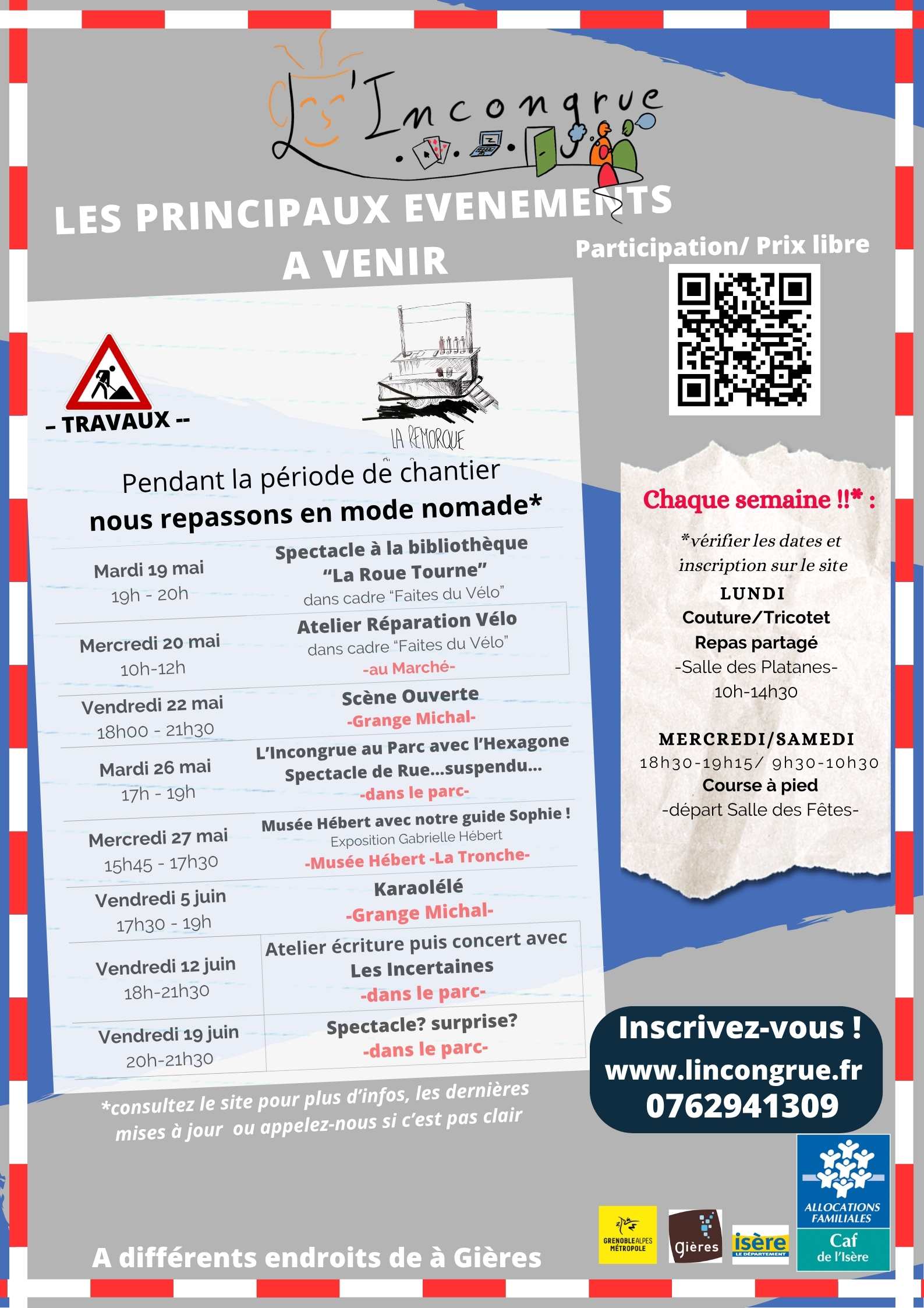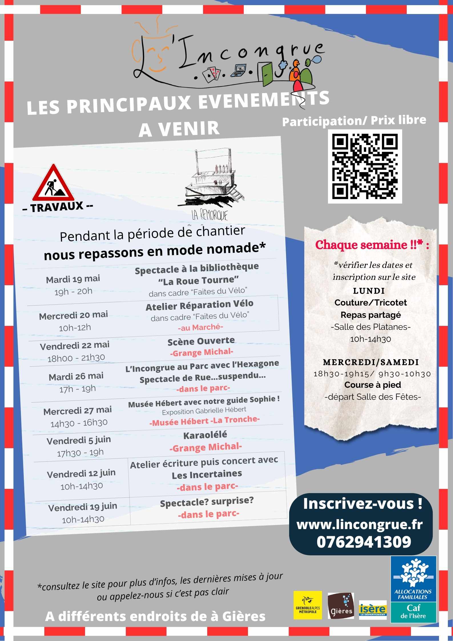 L’Incongrue c’est : un espace animé pour créer de la convivialité autour d’un ludo-bar sur remorque à vélo et maintenant également dans un local, pour proposer à partir des talents présents autour de nous des activités, pour se rencontrer, se découvrir au-delà de nos différences, proposer également de travailler autrement ensemble et ainsi créer du commun.